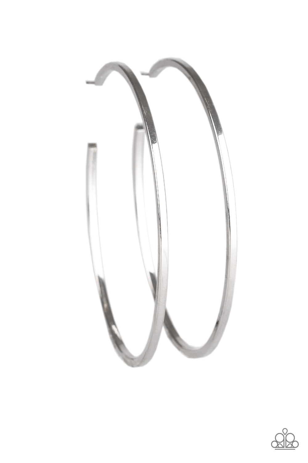 A glistening silver hoop curls around the ear for a casual look. Earring attaches to a standard post fitting. Hoop measures 2 1/2" in diameter.
